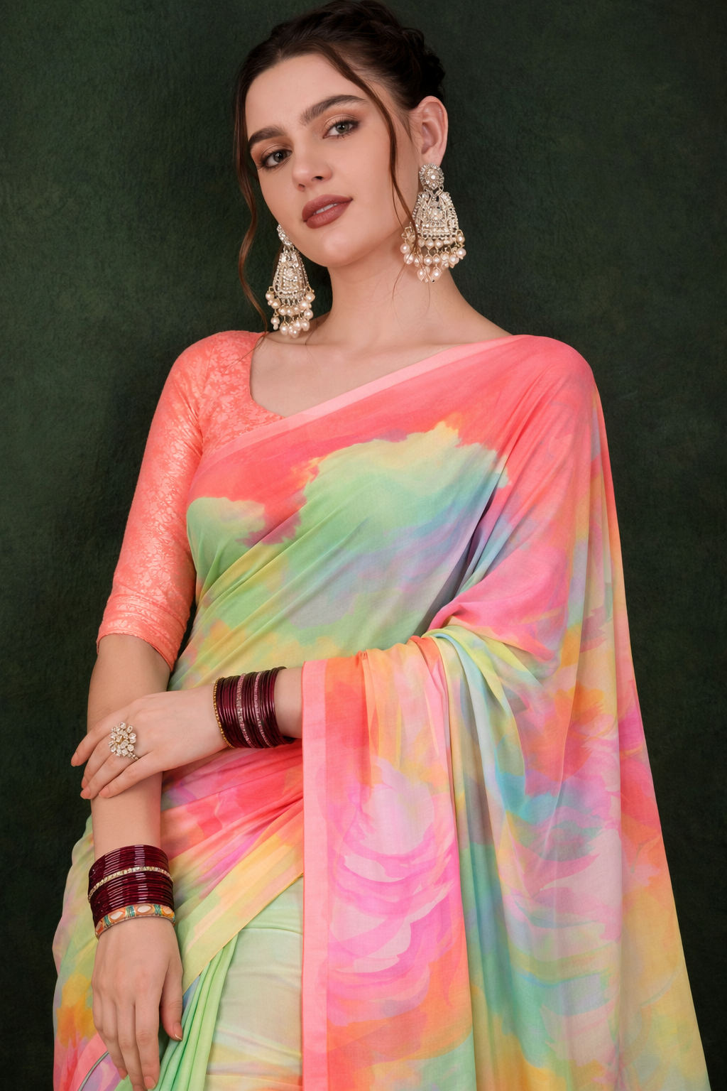 Milli Weightless Printed Saree – Elegant Teal Green Floral Designer Saree